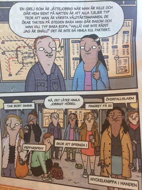Män anser mao att kvinnor ska agera som att alla män, utom just dem själva, är våldtäktsmän. Så istället för att hoppa på kvinnor som berättar om verkligheten och göra ännu en töntig jämförelse till rasism: bli sur på Männen. Männen som våldtar (du känner garanterat minst en), männen som tafsar och trakasserar och männen som skyller sexuellt våld på kvinnor. För det är DE männen som säger att du är en av dem, att du också är en potentiell våldtäktsman som kvinnor bör vara rädd för.