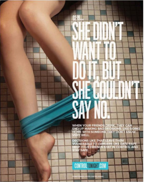 Två av dessa bilder är ämnade att få oss att vilja konsumera kläder, två är ämnade att få oss att bli känslomässigt engagerade i filmer, känna avsky, rädsla och ev lite äckel. Ändå är bildspråket lika, ljussättningarna påminner om varandra. Att anspela på våldtäkt och våld i största allmänhet är ett rätt vedertaget knep i reklamindustrin. Det är menat att kittla våra sinnen, få oss att rygga tillbaka och bli provocerade men samtidigt intresserade. Detta fungerar och därför fortsätter dessa bilder att tryckas upp på reklampelare och i kataloger. Problemet är att dessa bilder också påverkar hur vi ser på varandra, hur män ser på kvinnor, hur kvinnor ser på män och hur vi ser på sexualitet och vad som är tillåtet. Att ständigt matas med dessa bilder gör oss avtrubbade kring var gränserna för sexuellt våld går, vad som är ok att göra och vad vi bör acceptera att andra gör mot oss. Bilderna ovan är relativt subtila men det finns reklam som går ännu mer rakt på rödbetan. Som dessa: